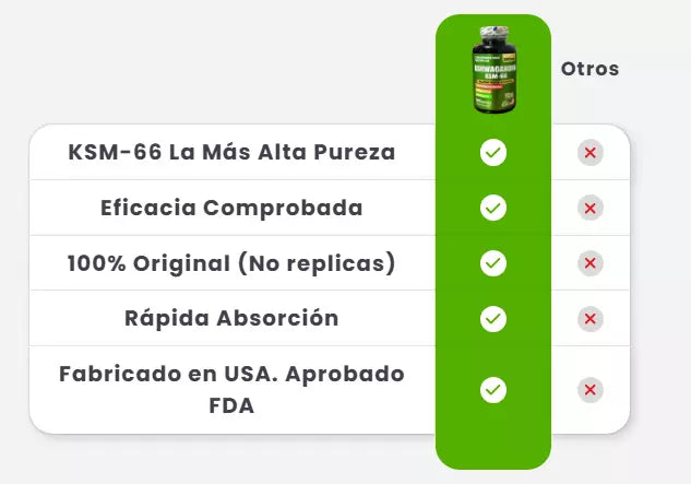 🌿 Sí, nuestra Ashwagandha KSM-66® es 100% original y certificada. En el mercado hay opciones más económicas, pero muchas son réplicas o productos sin respaldo real. Nosotros trabajamos directamente con proveedores autorizados, garantizando que recibes la fórmula auténtica, con estudios clínicos, alta concentración de withanólidos y el proceso ayurvédico tradicional que la hace única. Comprar lo original es invertir en tu salud con seguridad y confianza.