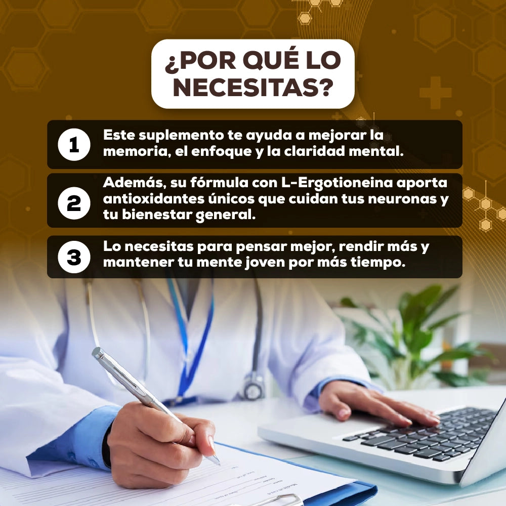 Las cápsulas proporcionan nutrientes esenciales que apoyan la salud cerebral, mejorando la memoria y el enfoque naturalmente.