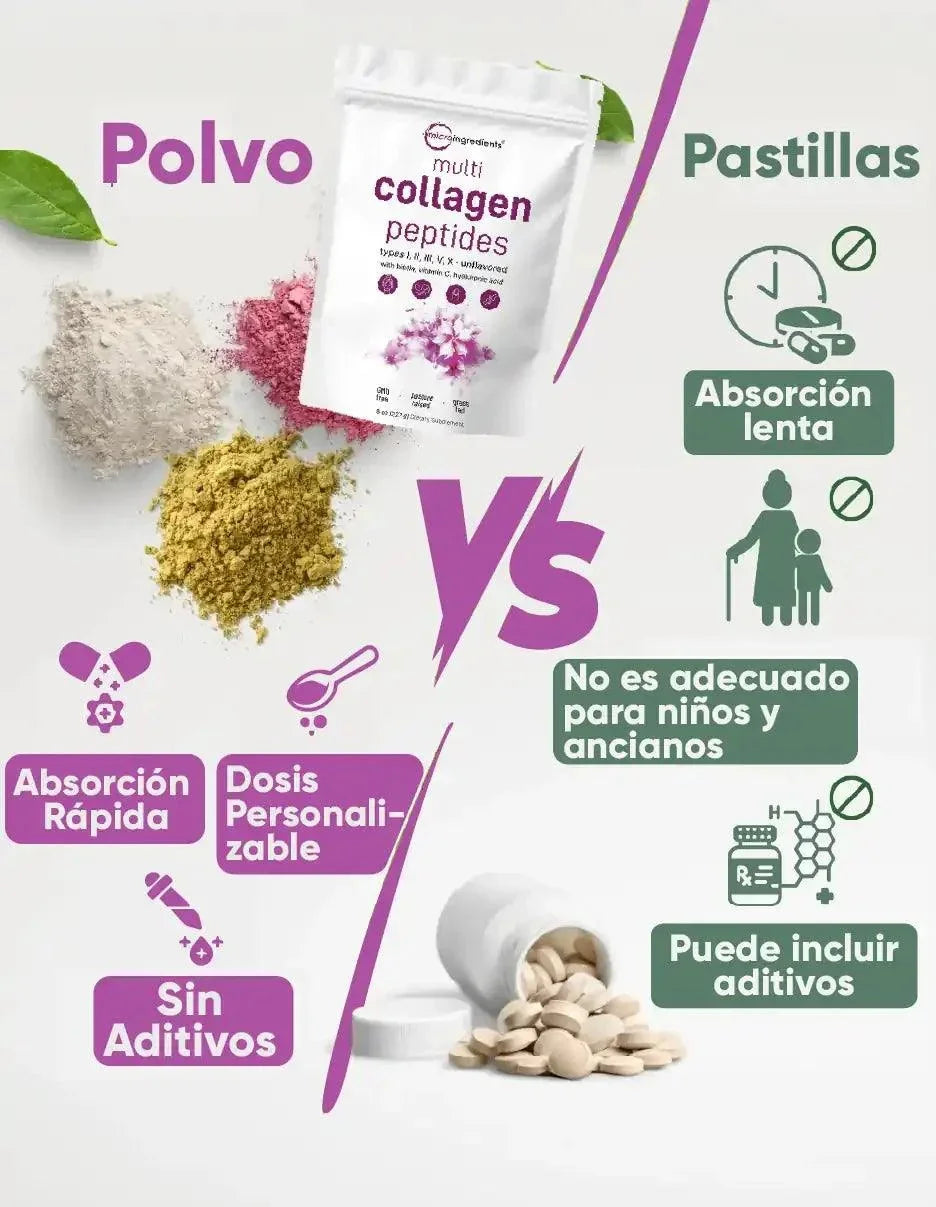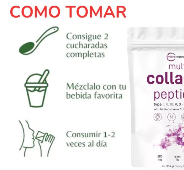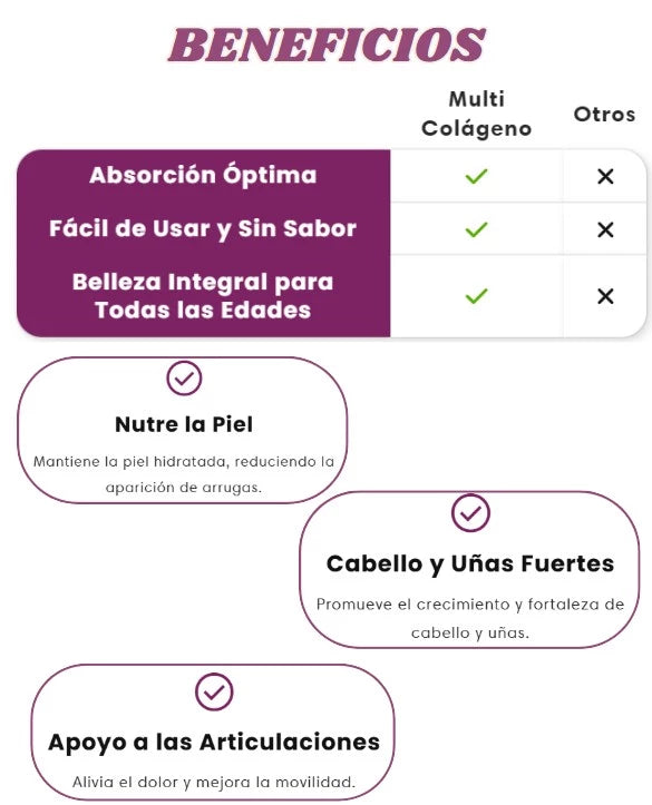 Transforma tu piel, cabello y articulaciones con colágeno multi-tipo.