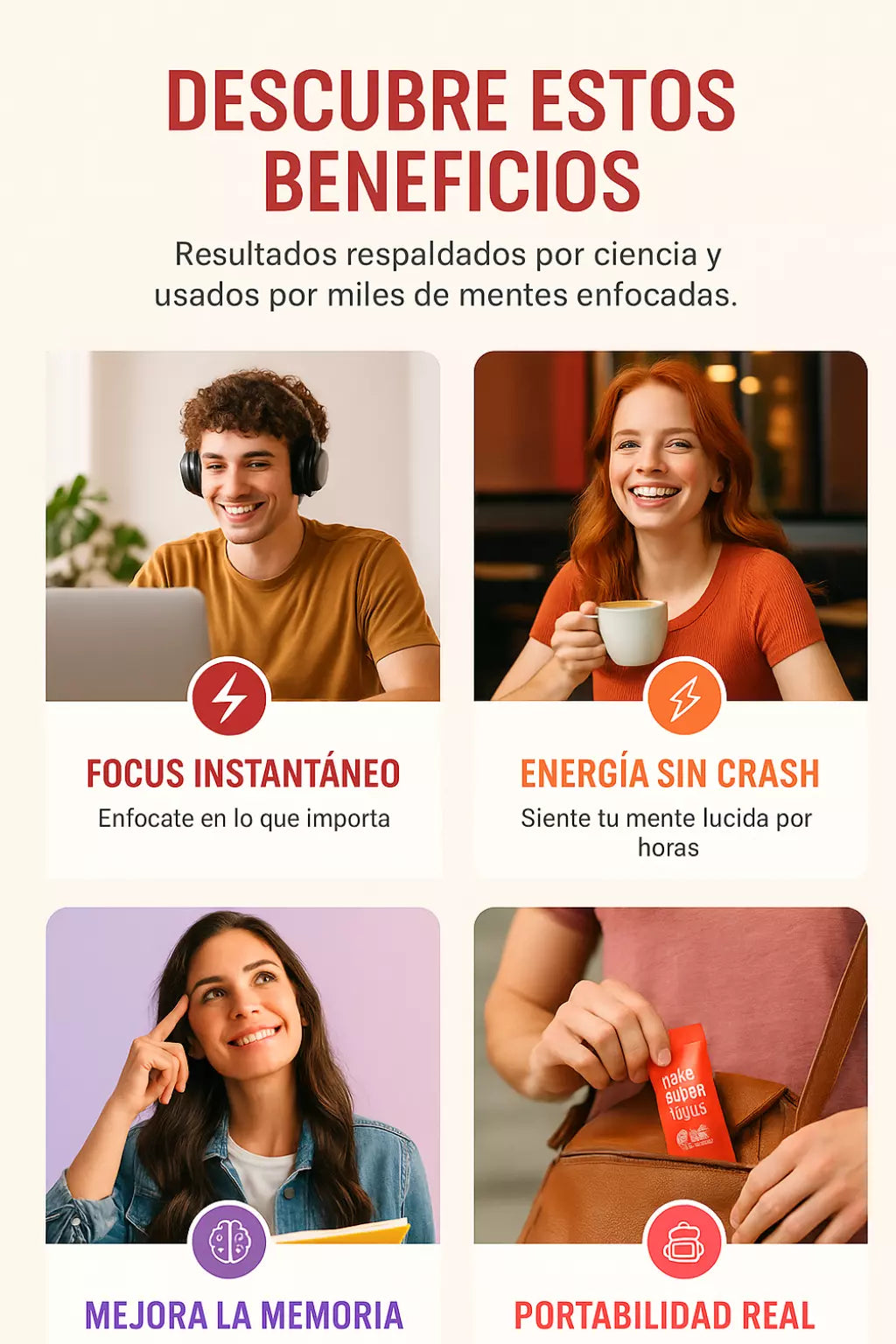 Mejora concentración sostenida, memoria nítida y energía sin choque para días productivos y controlados