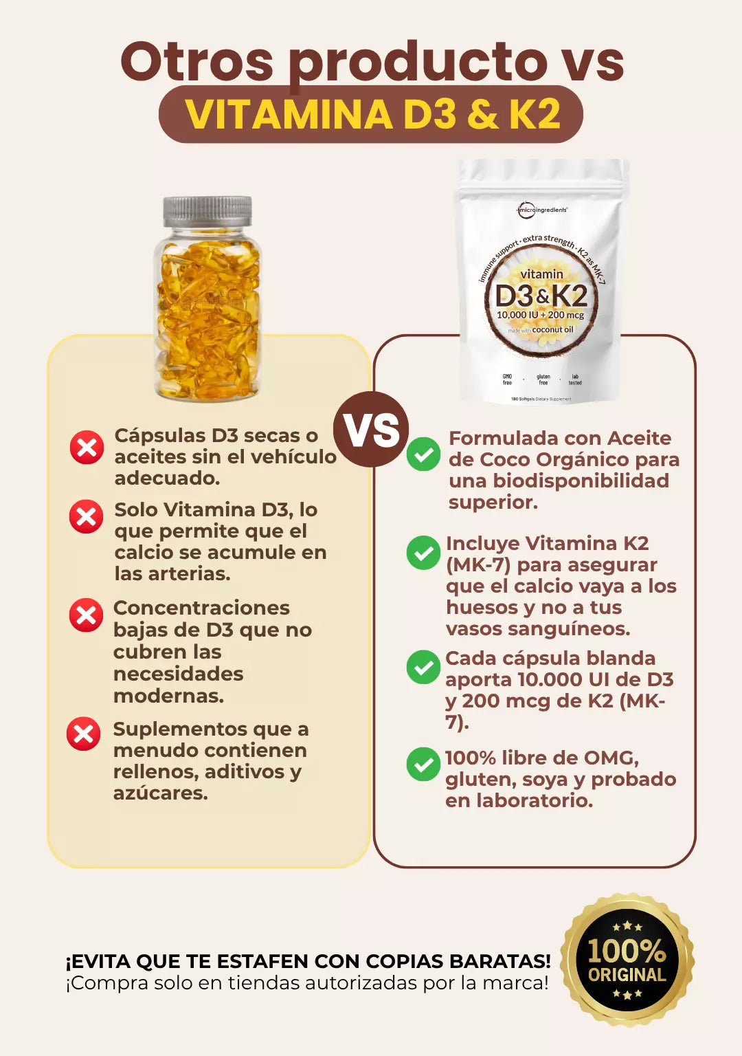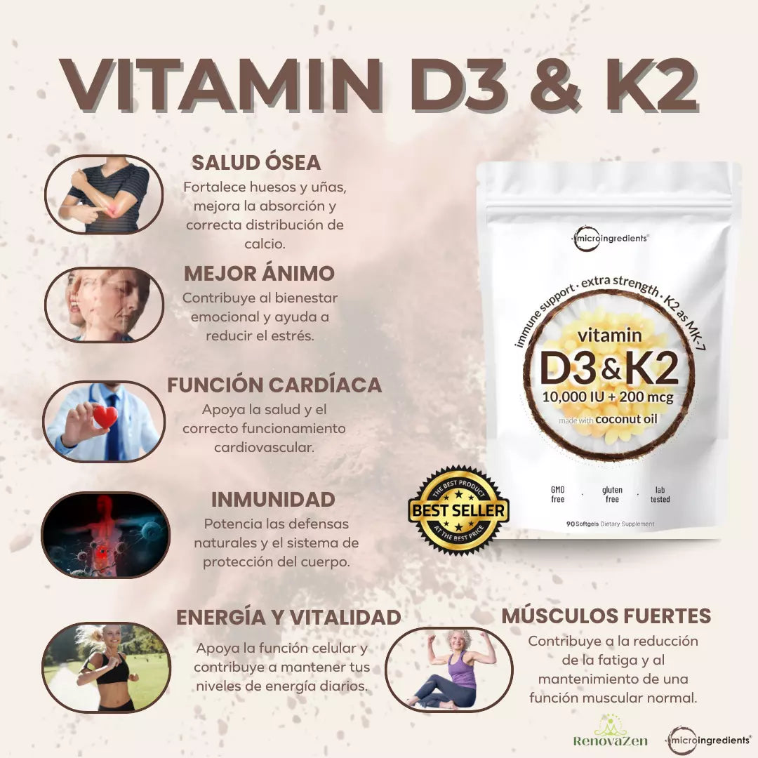 Mejora energía, sueño y huesos con una fórmula D y K confiable y eficaz